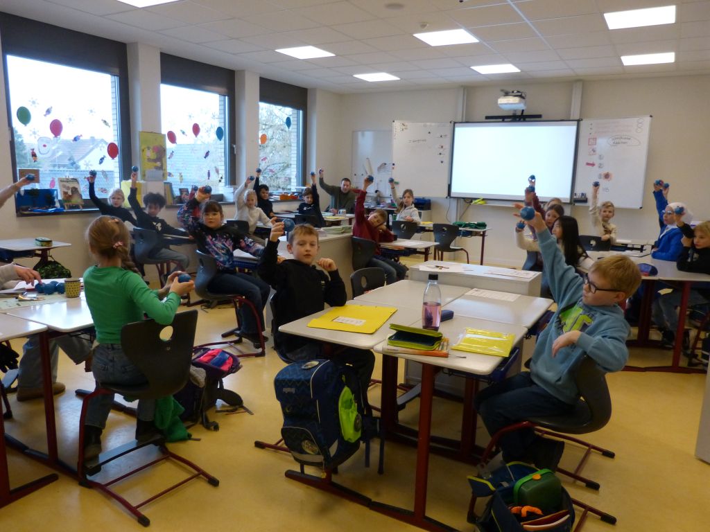 Jede Klasse brachte gelungene lustige und nachdenkliche Beiträge in die Feier ein: Wir lernten die Weihnachtsmaus kennen, hörten vom Holler, boller Weihnachtsmann, konnten den Weihnachtstrubel im Gedicht sehr gut verstehen und dass der Weihnachtsmann ein Weihnachts-work-out benötigt, um fit zu bleiben, fanden alle lustig. Natürlich nahmen wir die Feier auch als Möglichkeit, uns zu bedanken, bei den vielen helfenden Menschen, die unser Kollegium jeden Tag unterstützen!